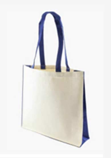 Canvas bags with dyed laminated Jute gusset. Excellent print definition and extremely durable. Available in Natural canvas body and Dyed Jute gusset matching with long webbed cotton handles.