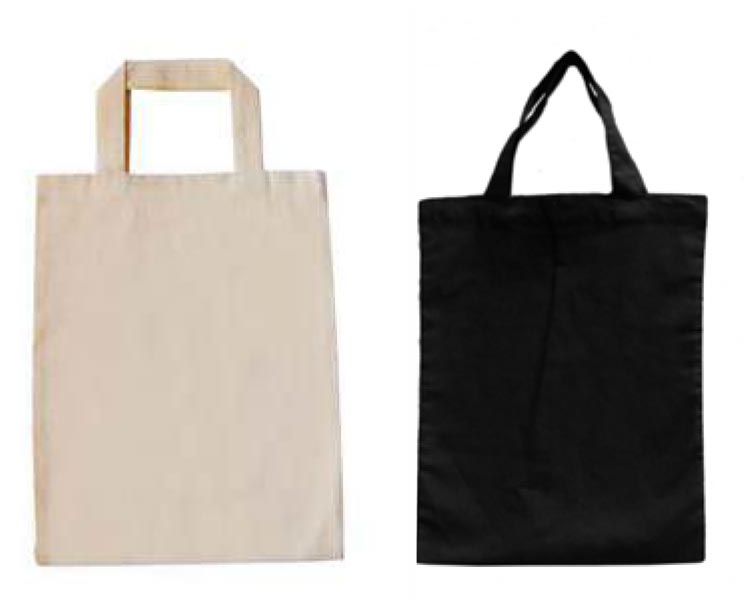 Canvas bags with a wipe clean PP lining. Excellent print definition and extremely durable. Available in Natural, White & Black colours with short handles, other colours to order.