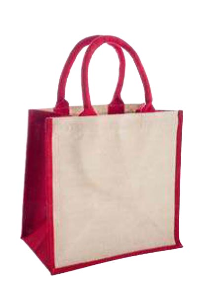 Unlaminated Natural jute bag economy style with dyed shoulder cotton tape handles