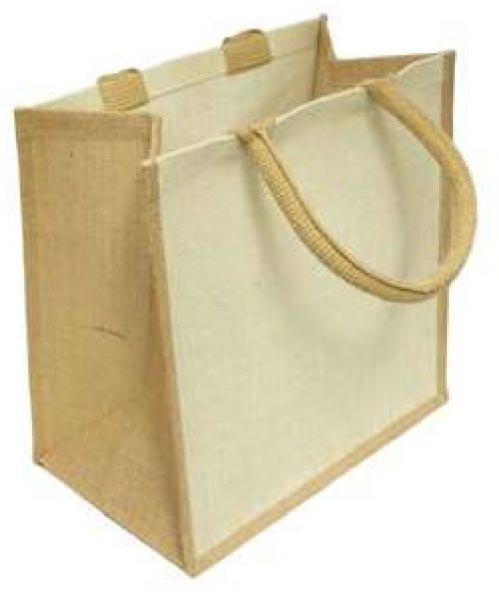Unlaminated Natural jute bag economy style with dyed shoulder cotton tape handles